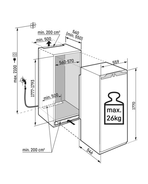 Dimensões de abertura em cm (A / L / P) 177,2-178,8 / 56-57 / min. 55
