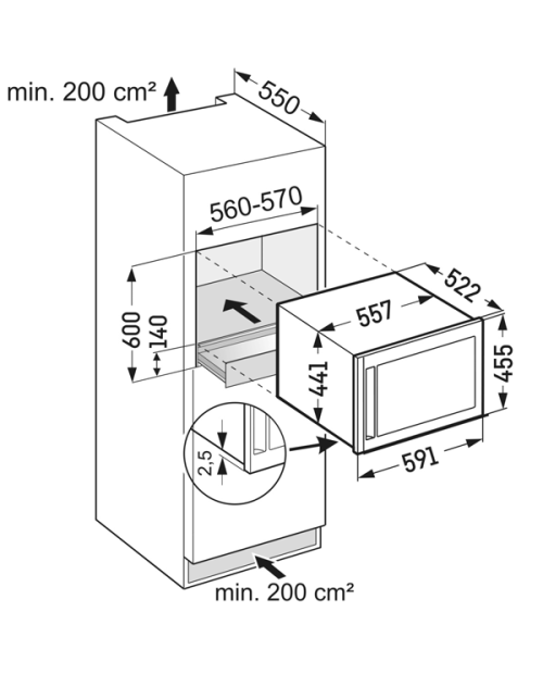 Dimensões de abertura em cm (A / L / P) 45 / 56 / min. 55