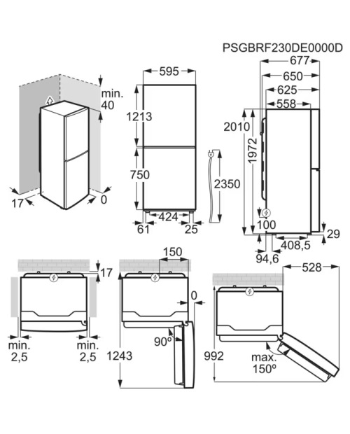 Dimensões (AxLxP), em mm: 2010x595x650