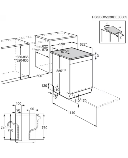 Dimensões (AxLxP), em mm: 850x598x622