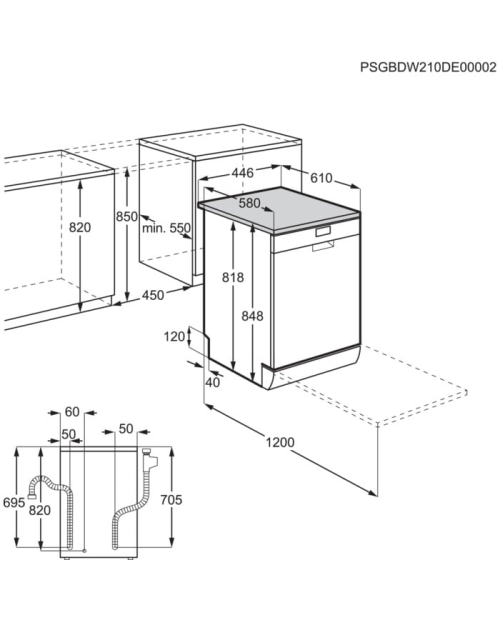 Dimensões A(min/máx)xLxP (mm): 820/850 x 450 x 570