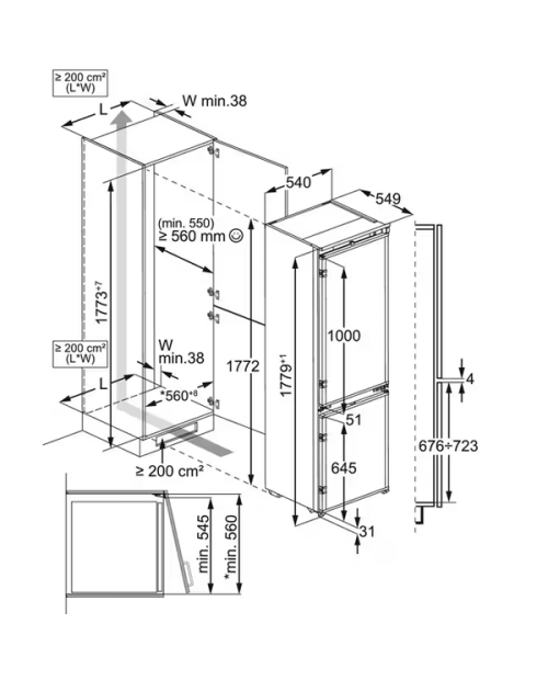 Dimensões de encastre (AxLxP), em mm: 1780x560x550