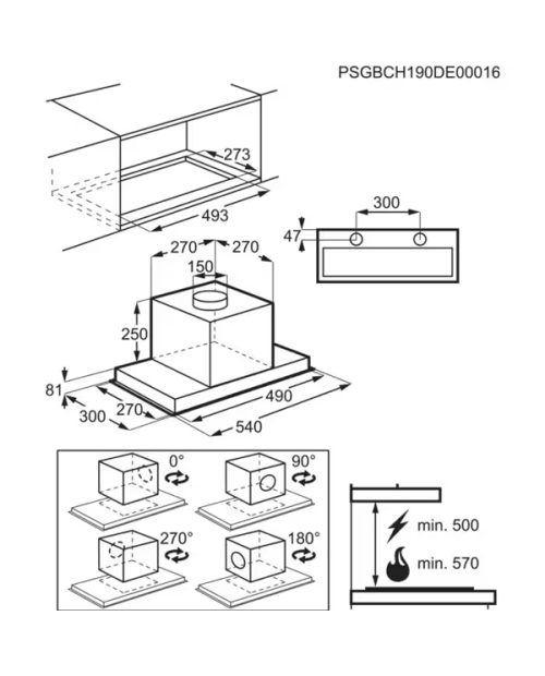 Cap. de extração, nível máx/mín: 450 m3/h / 285 m3/h m³/h