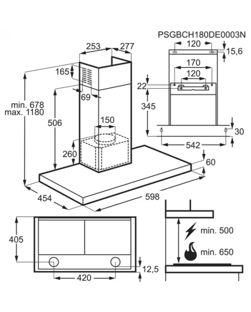 Dimensions AxLxP mm: 1180x598x454