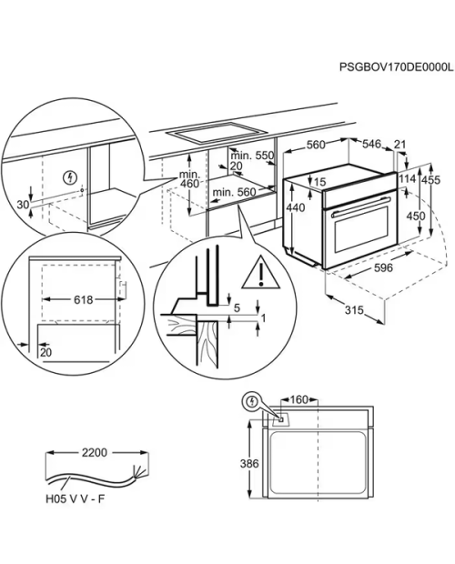 Dimensões de encastre (AxLxP), em mm: 450x560x550