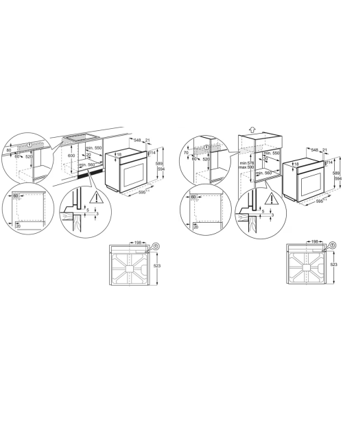 Dimensões de encastre (AxLxP), em mm: 600x560x550