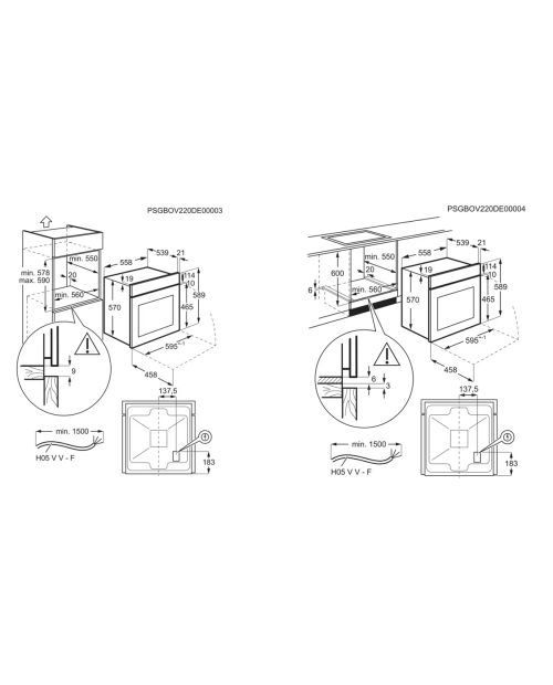 Dimensões de encastre (AxLxP), em mm: 593x560x550