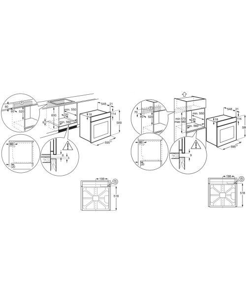 Dimensões de encastre (AxLxP), em mm: 600x560x550