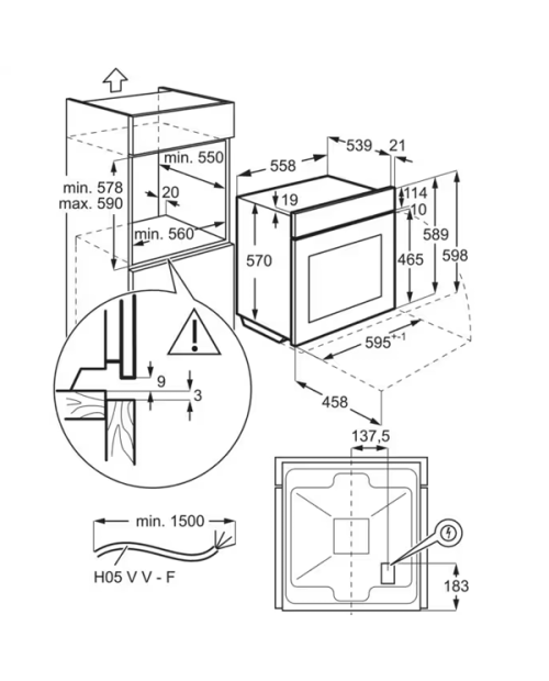Dimensões de encastre (AxLxP), em mm: 593x560x550