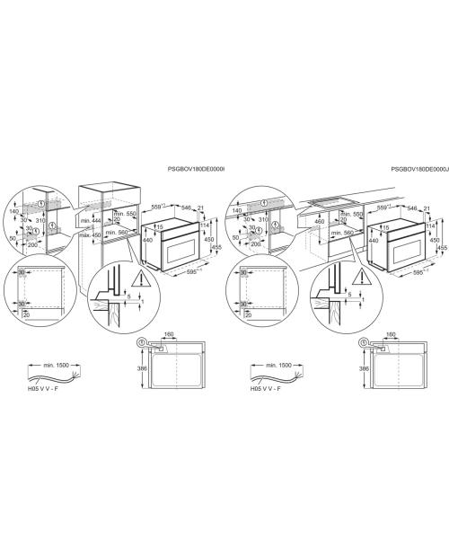 Dimensões de encastre (AxLxP), em mm: 450x560x550