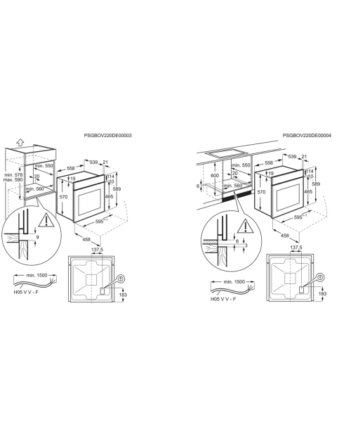 Dimensões de encastre (AxLxP), em mm: 593x560x550