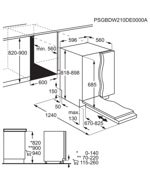 Dimensões A(min/máx)xLxP (mm): 820/900 x 600 x 560