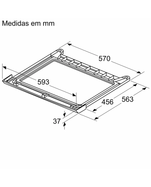 Dimensões do produto (altura x largura x profundidade) sem embalagem: 34,6x593x556 mm.