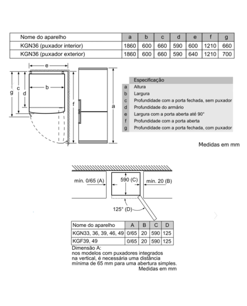Aparelho (A x L x P sem puxador): 186 x 60 x 66 cm INFORMAÇÃO TÉCNICA
