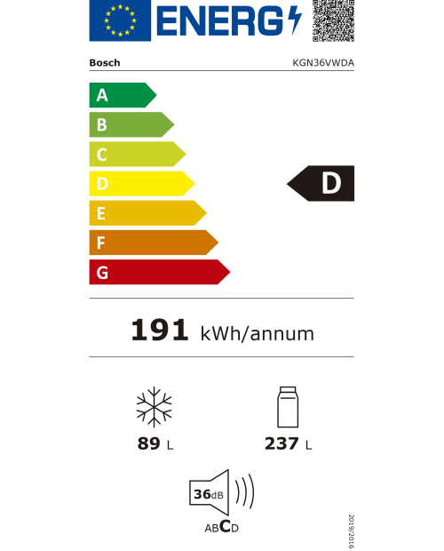 Consumo anual de energia (kWh/ano): 191 kWh/ano