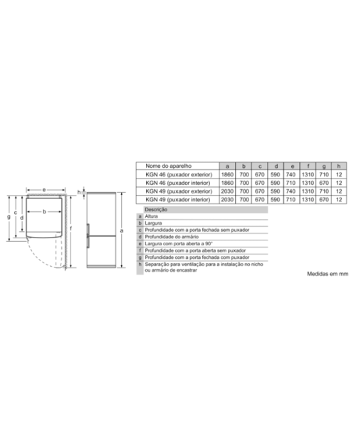 Aparelho (A x L x P sem puxador): 203 x 70 x 67 cm INFORMAÇÃO TÉCNICA