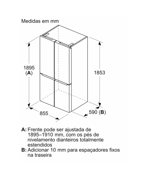 Aparelho (A x L x P sem puxador): 189.5 x 85.5 x 66.6 cm