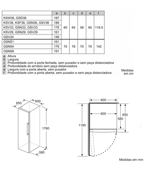 Aparelho (A x L x P sem puxador): 176 x 60 x 65 cm ACESSÓRIOS