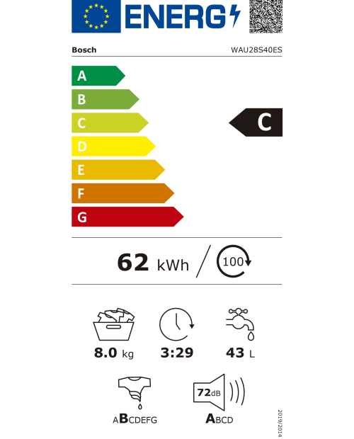 Energia / Àgua: 62 kWh / 43 litros