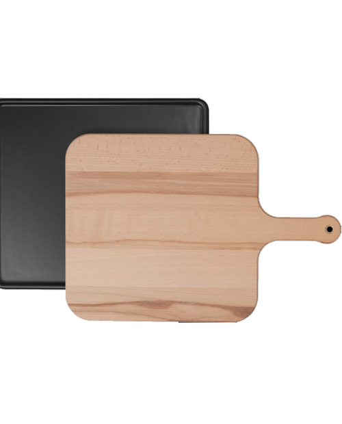 Pedra cerâmica com espátula de madeira. Ideal para cozer pão, pizza e alimentos congelados. A pedra é apta à limpeza pirolítica
