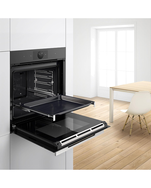 1 nível de extensão totalmente extraível, independente pode ser colocado em qualquer nível nos fornos pirolíticos.