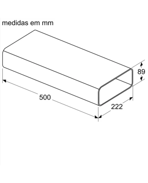 Tubo plano para sistema de conduta (222 x 89 x 500mm, macho)