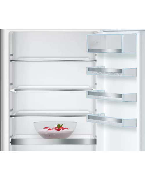 5 prateleiras de vidro (4 ajustáveis em altura), das quais 1 divisível, 1 extensível