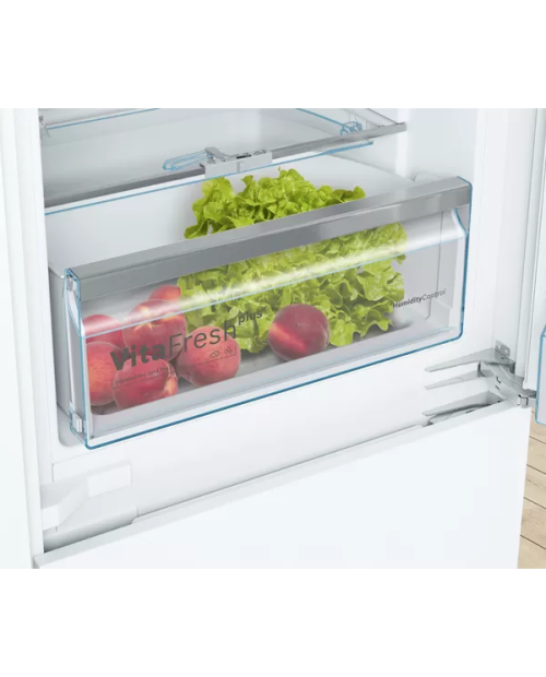 Gaveta VitaFresh Plus com railes telescópicos e controlo de humidade, para manter as frutas e legumes frescos o dobro do tempo. CONGELADOR