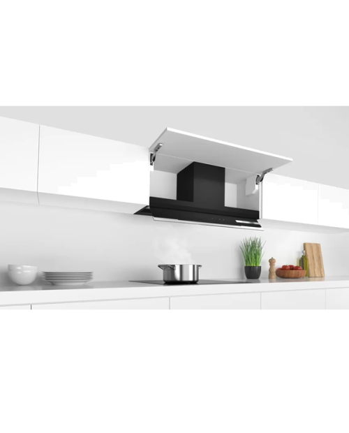 Design compacto com eficiência de espaço para possibilidades de arrumação extra no exaustor até ao máximo de 10 kg em cada lado.