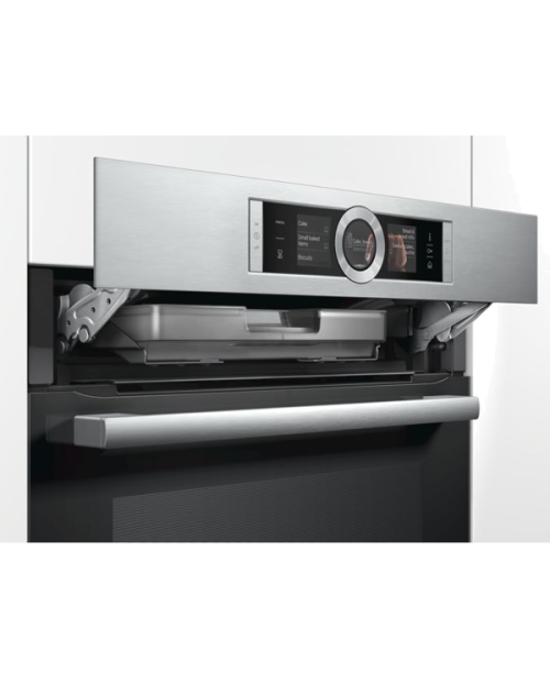 Forno combinado a vapor, integrável com 12 modos de aquecimento: Ar quente 4D, Ar quente suave, Calor superior/ inferior, Calor superior/ inferior suave, Grelhar com ar quente, Grelhar-grande quantidade, Grelhar-pouca quantidade, Função Pizza, Calor inferior, Assar lentamente, Preaquecer a loiça, Manter quente