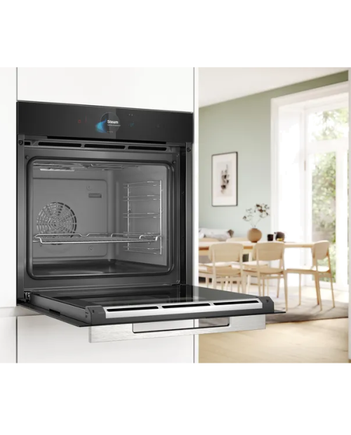 Porta do forno com abertura rebatível, SoftClose (fecho suave da porta), SoftOpen (abertura suave da porta)