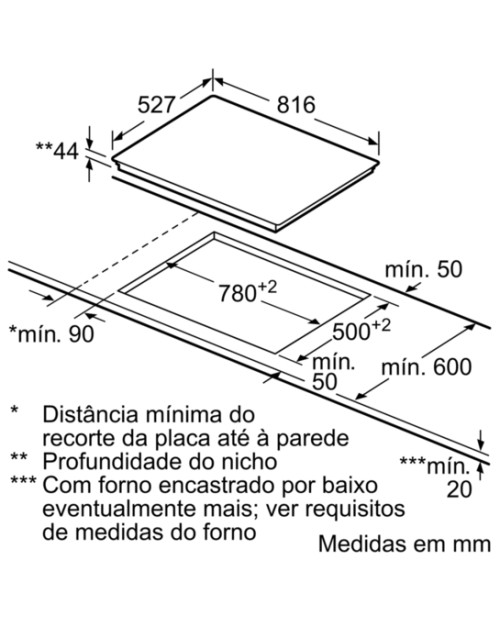 Nicho (AxLxP): 44 x 780 x 500 mm