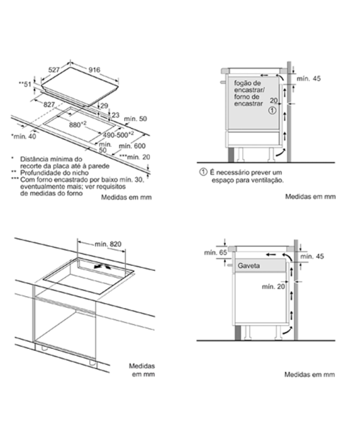 Zonas de cozedura de indução: 1 x Ø 400 mmx230 mm, 3.3 kW (nível max. de potência 3.7 kW) ou 2 x Ø 230 mm, 2.2 kW (nível max. de potência 3.7 kW); 1 x Ø 260 mm, 2.2 kW (nível max. de potência 3.7 kW);1 x Ø 400 mmx230 mm, 3.3 kW (nível max. de potência 3.7 kW) ou 2 x Ø 200 mm, 2.2 kW (nível max. de potência 3.7 kW) AMBIENTE E SEGURANÇA