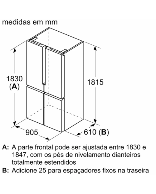 Aparelho (A x L x P sem puxador): 183 x 90.5 x 73.1 cm