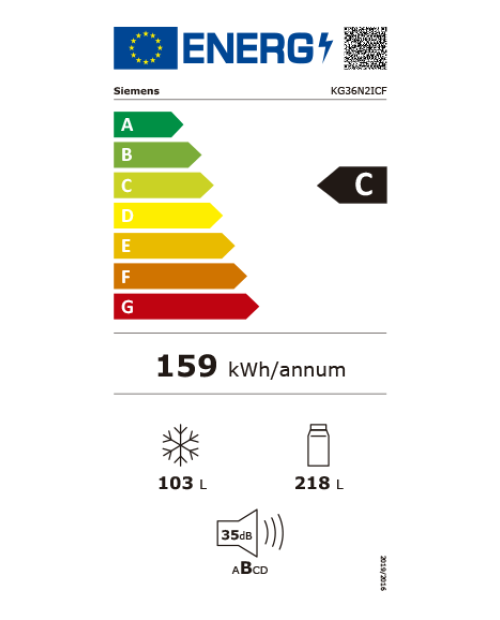 Consumo anual de energia (kWh/ano): 159 kWh/ano