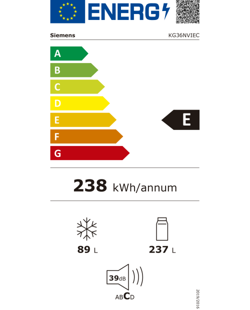 Consumo anual de energia (kWh/ano): 238 kWh/ano