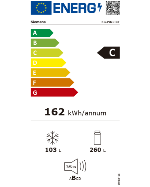 Consumo médio anual de energia em kilowatt-hora por ano (kWh/a): 162 kWh/ano