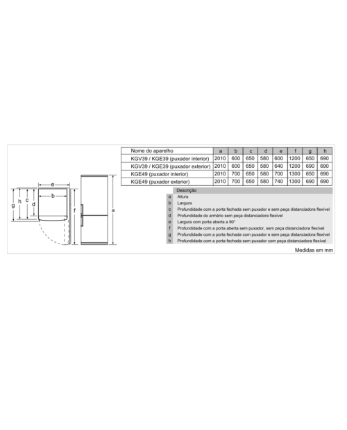 Aparelho (A x L x P sem puxador): 201 x 70 x 65 cm INFORMAÇÃO TÉCNICA