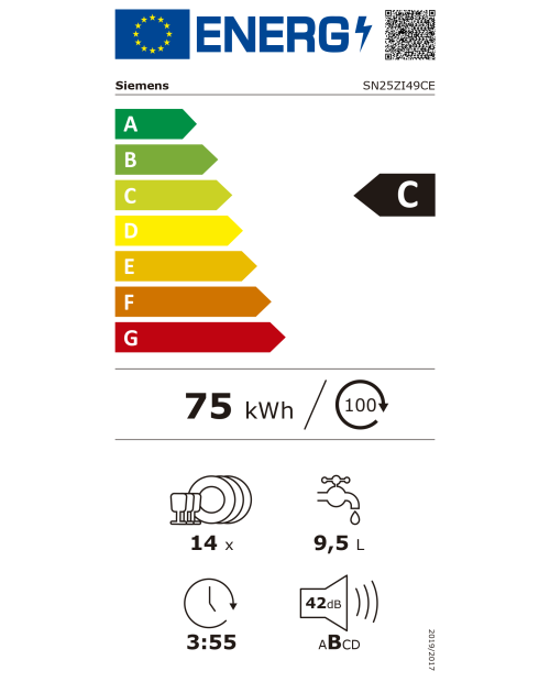 MÁQUINA DE LAVAR LOUÇA SIEMENS - SN25ZI49CE -