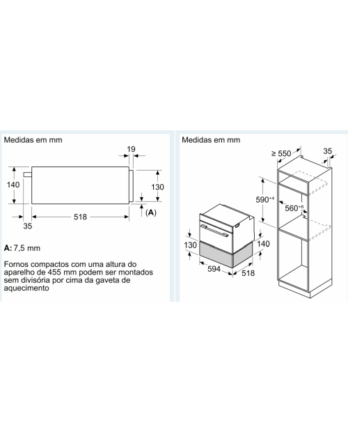 Dimensões do nicho de encastre (A x L x P): 140 mm x 560 mm - 568 mm x 550 mm
