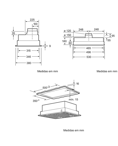 Diâmetro das condutas Ø 150 mm ou Ø 120 mm