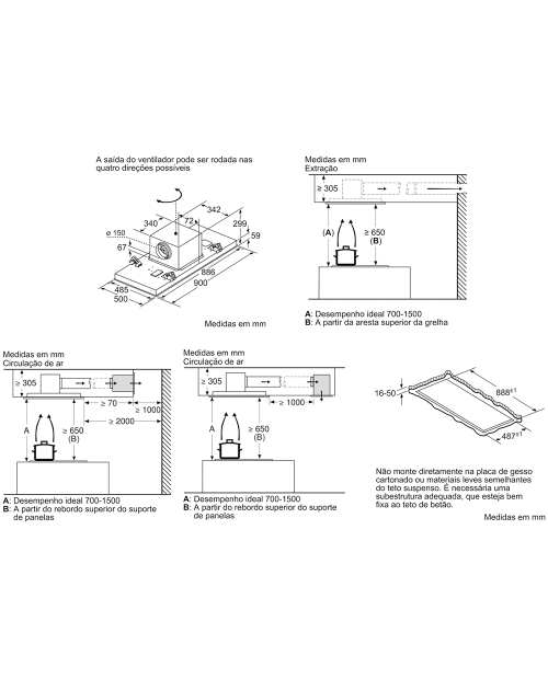 Medidas do aparelho com o módulo de recirculação de ar (AxLxP): 315-315 x 900 x 500 mm