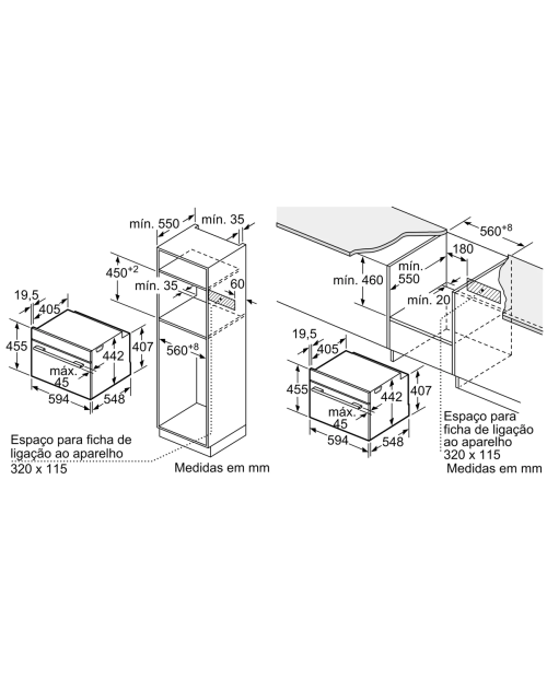 Dimensões do nicho (AxLxP): 450-455 x 560-568 x 550 mm
