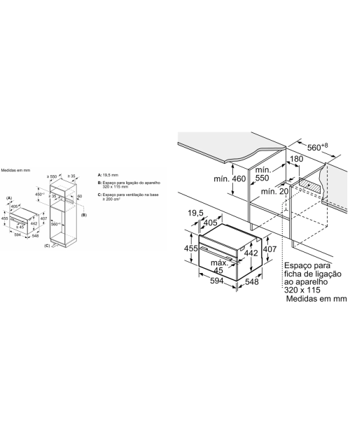 Dimensões do nicho (AxLxP): 450-455 x 560-568 x 550 mm