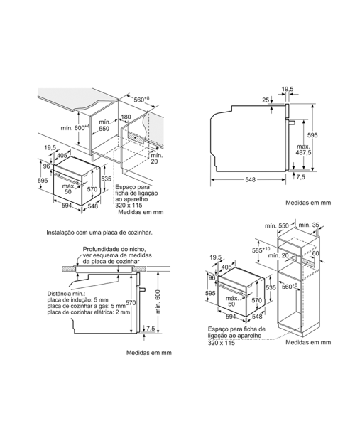 Dimensões do nicho (AxLxP): 585-595 x 560-568 x 550 mm