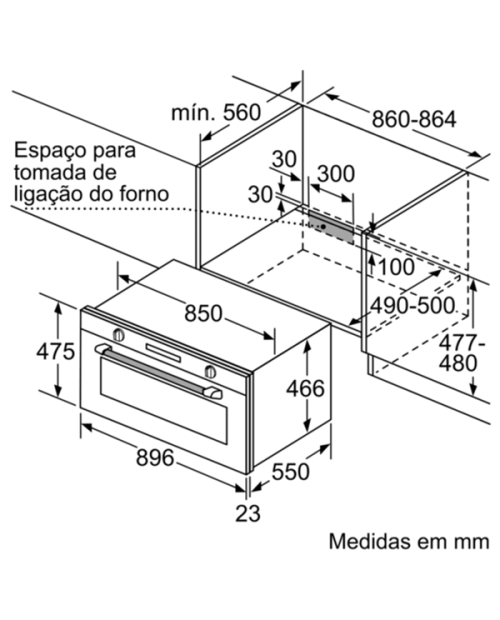 Dimensões do nicho (AxLxP): 477-480 x 860-864 x 560 mm