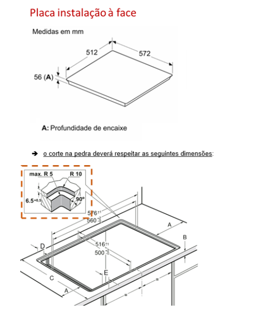 Dimensões do nicho para a instalação (AxLxP mm): 56 x 576 x 516