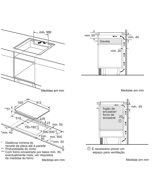Espessura minima da bancada: 30 mm