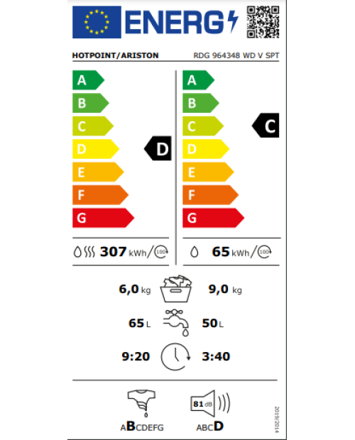 MÁQUINA DE LAVAR E SECAR ROUPA HOTPOINT - RDG 964348 WD V SPT