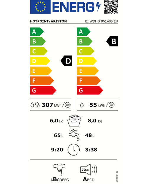 Mais poupança energética. Este aparelho Hotpoint garante semopre desempenho elevado e baixo consumo graças à classe energética D|B